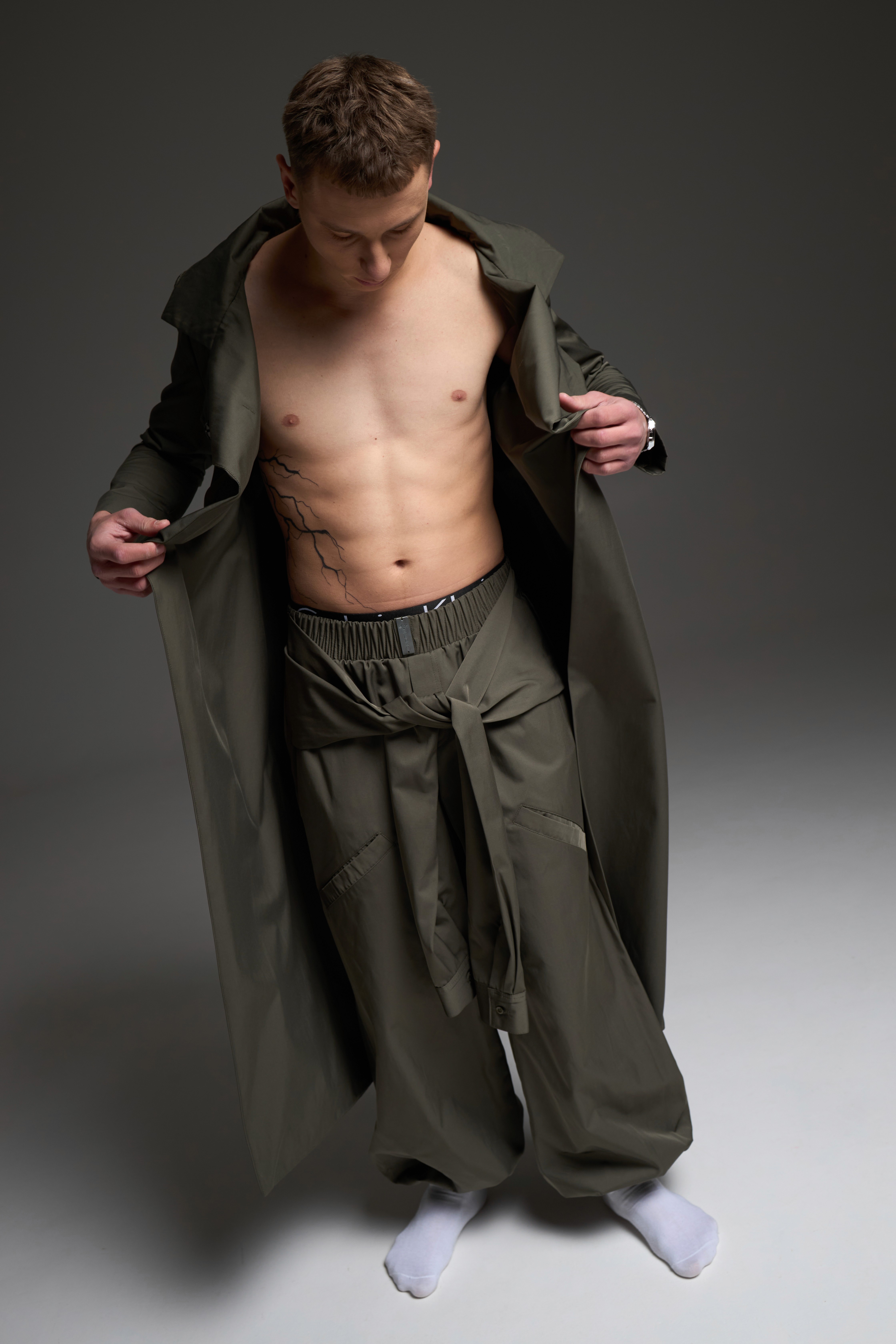 They are made from a dense, premium shell fabric with a pronounced water-repellent effect. Visually, the material looks expensive and structured. Tactually, it feels solid and reliable. These pants are designed for demi-season wear, when weather shifts and stability matters.